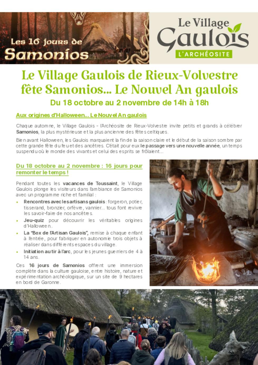 VACANCES SCOLAIRES DE TOUSSAINT : Les 16 jours de Samonios